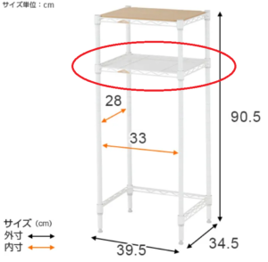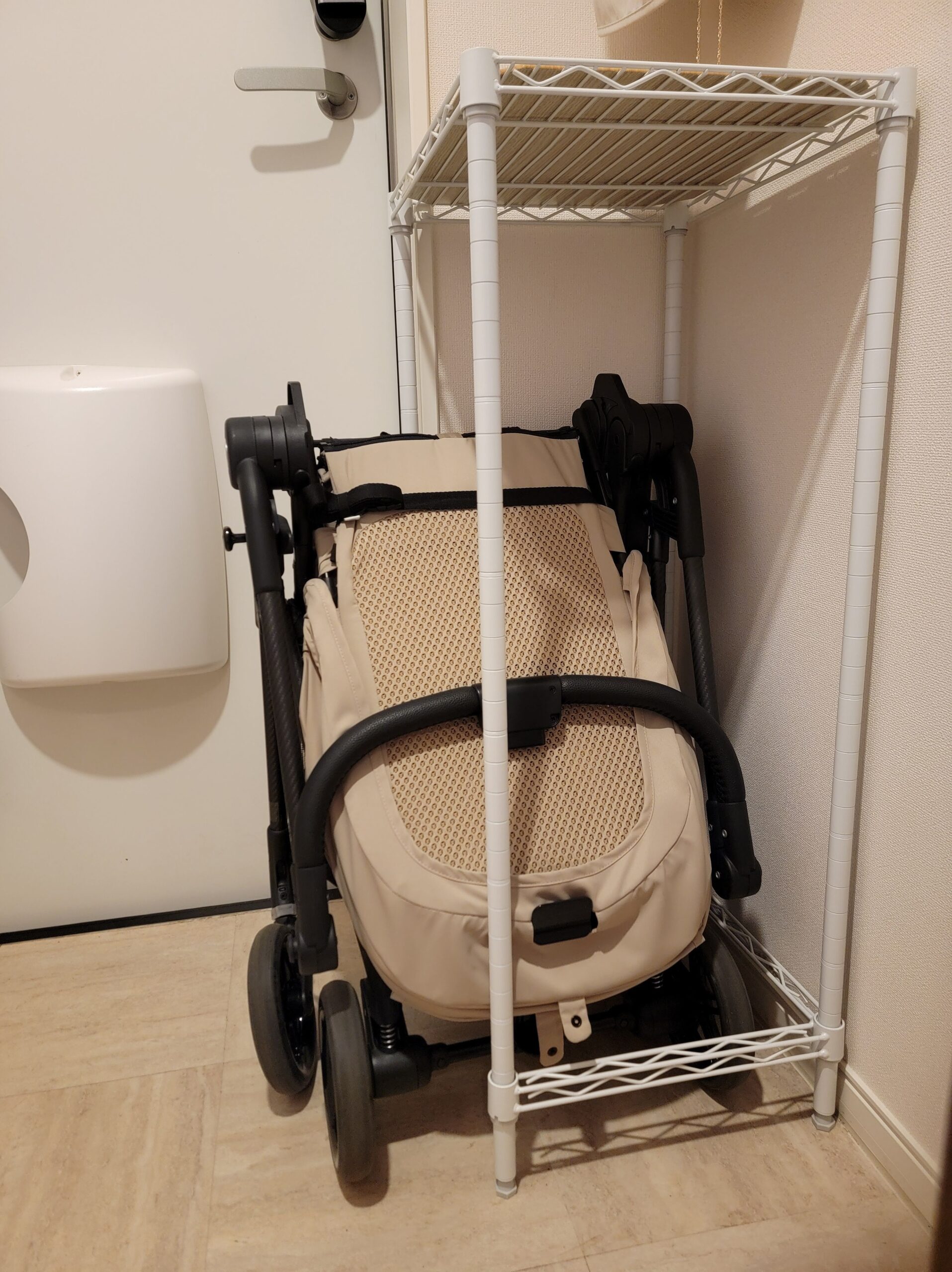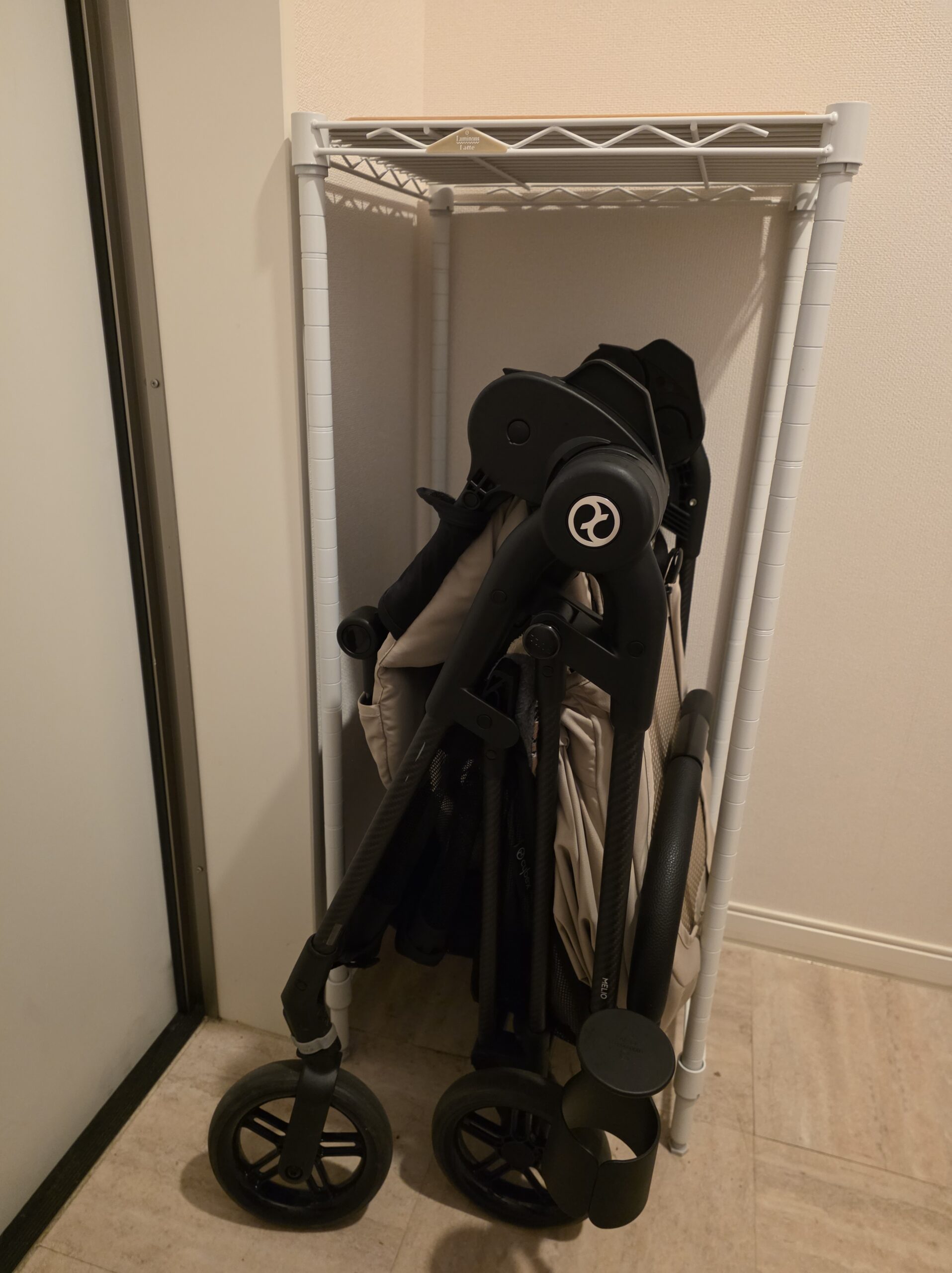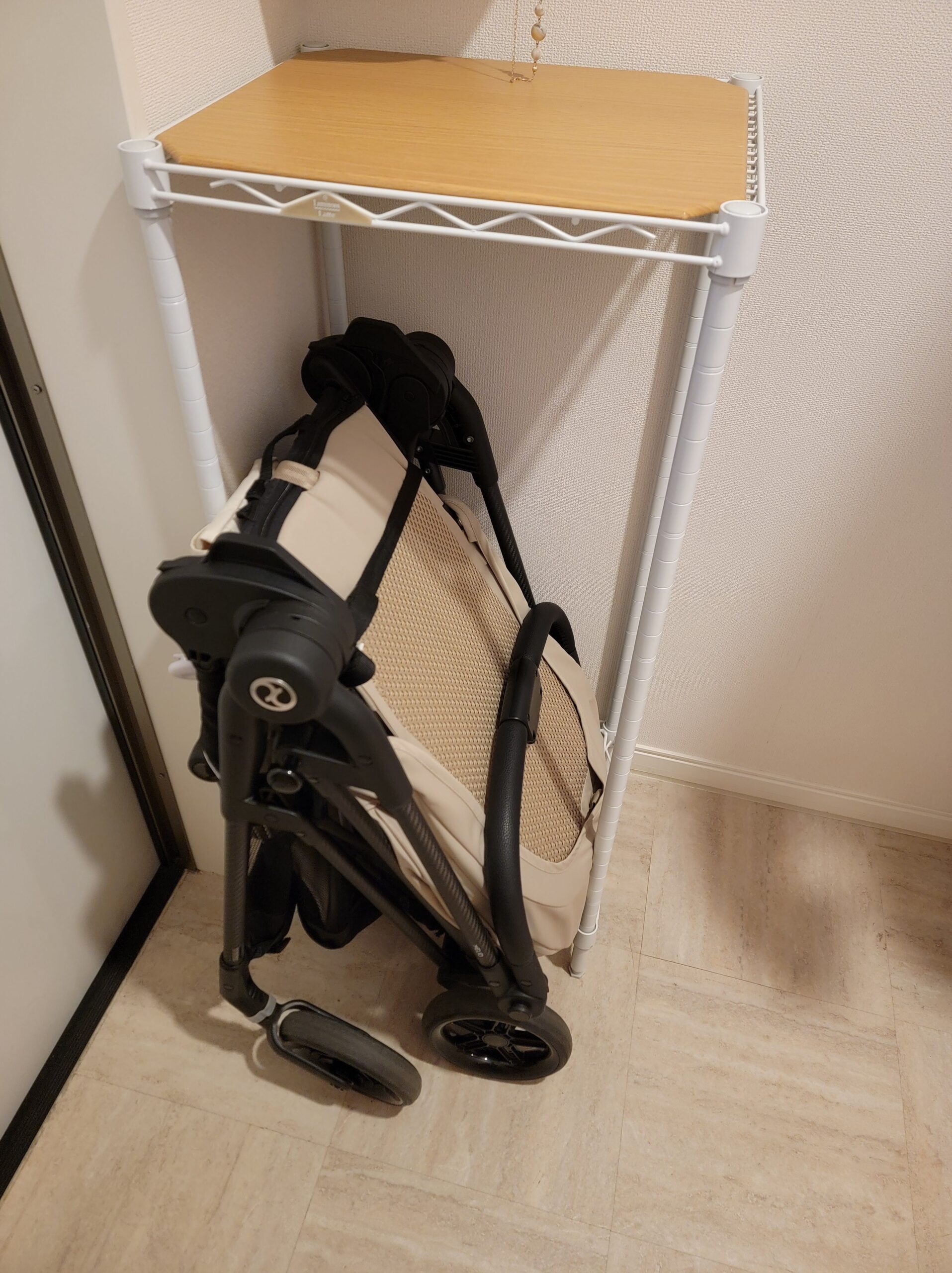 このラックの内寸は33㎝で、幅29cmのメリオにすっぽり収まります!