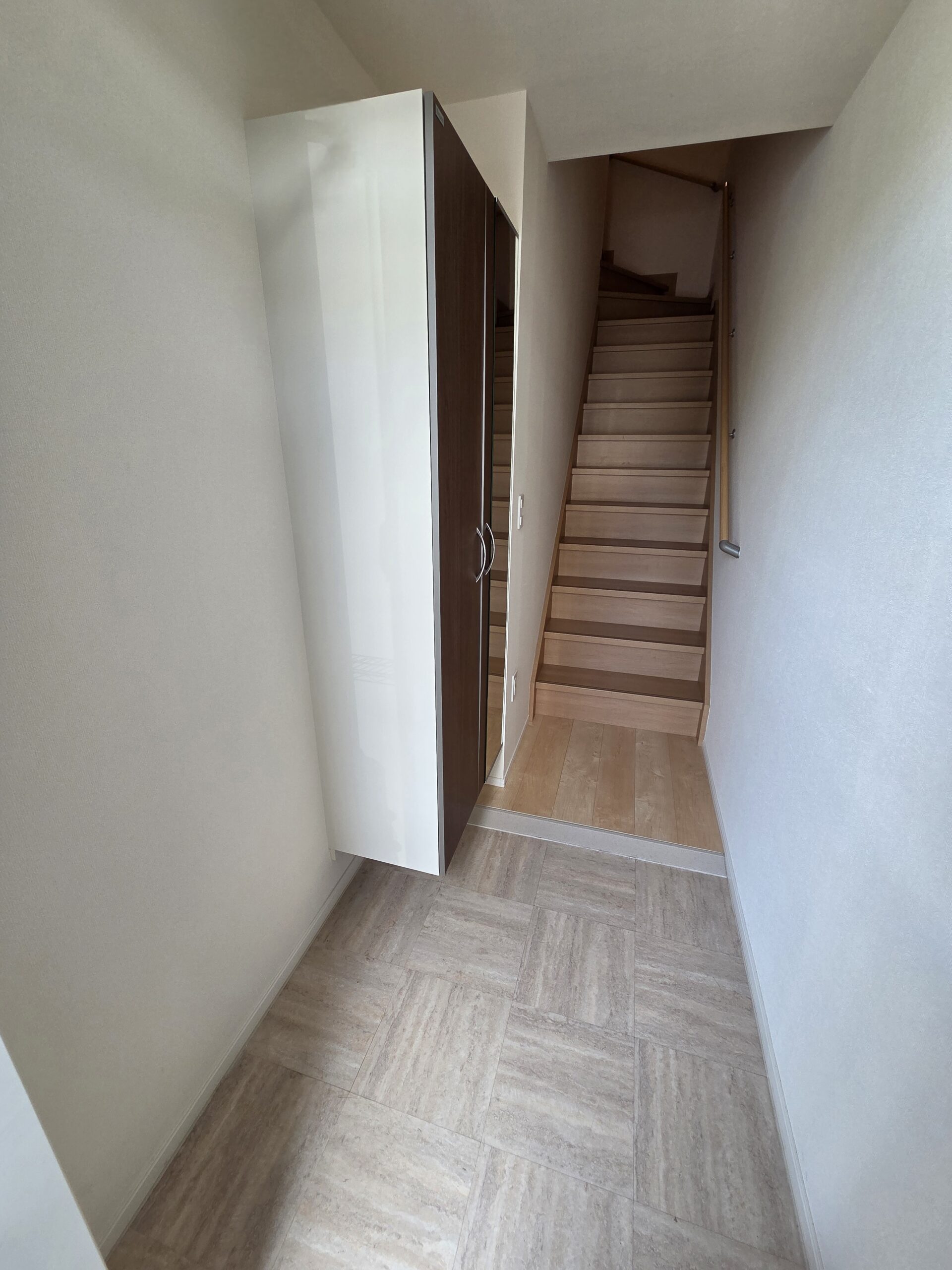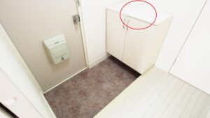 通行の動線を考えると収納スペースは靴箱横一択となります。