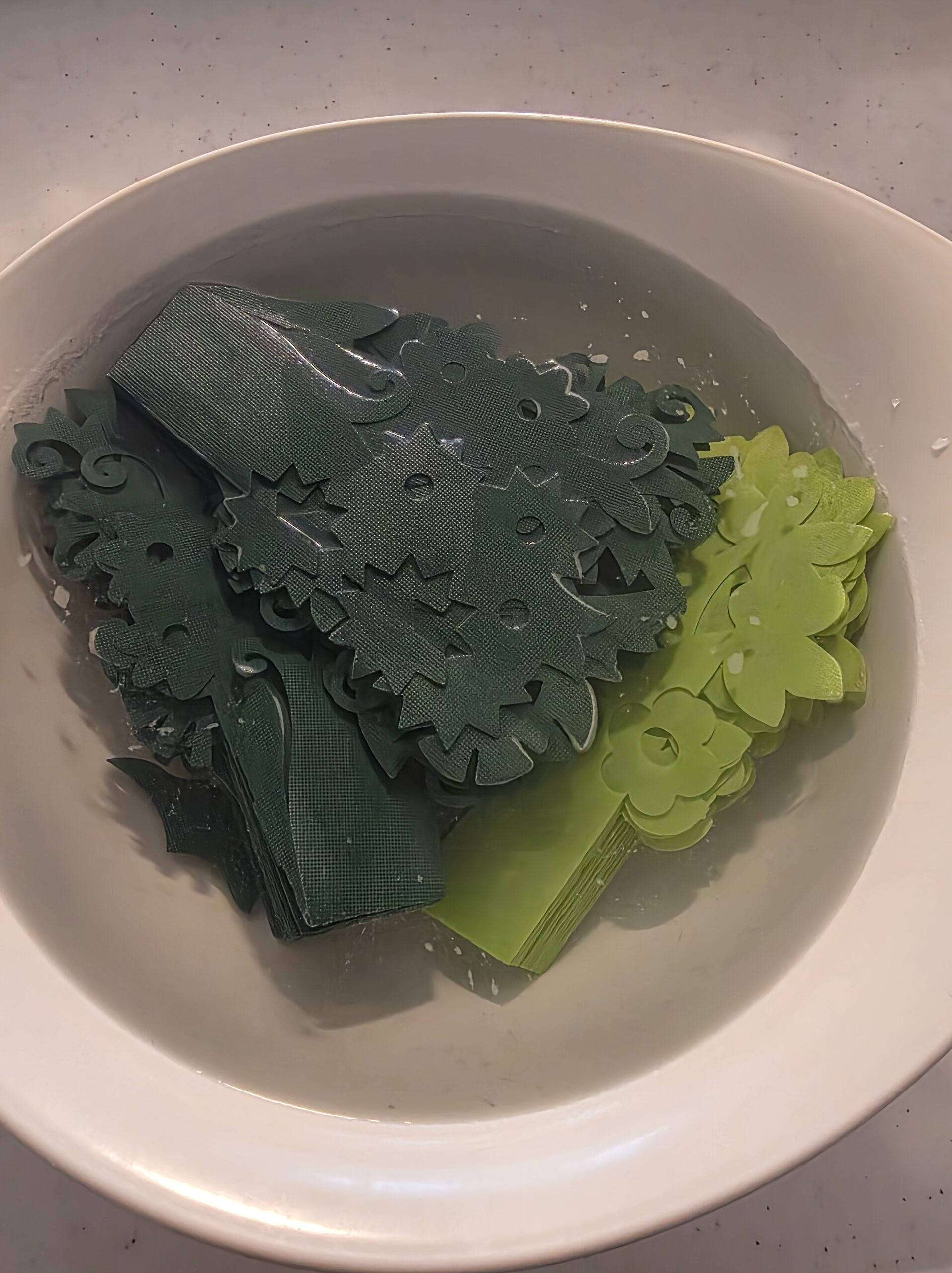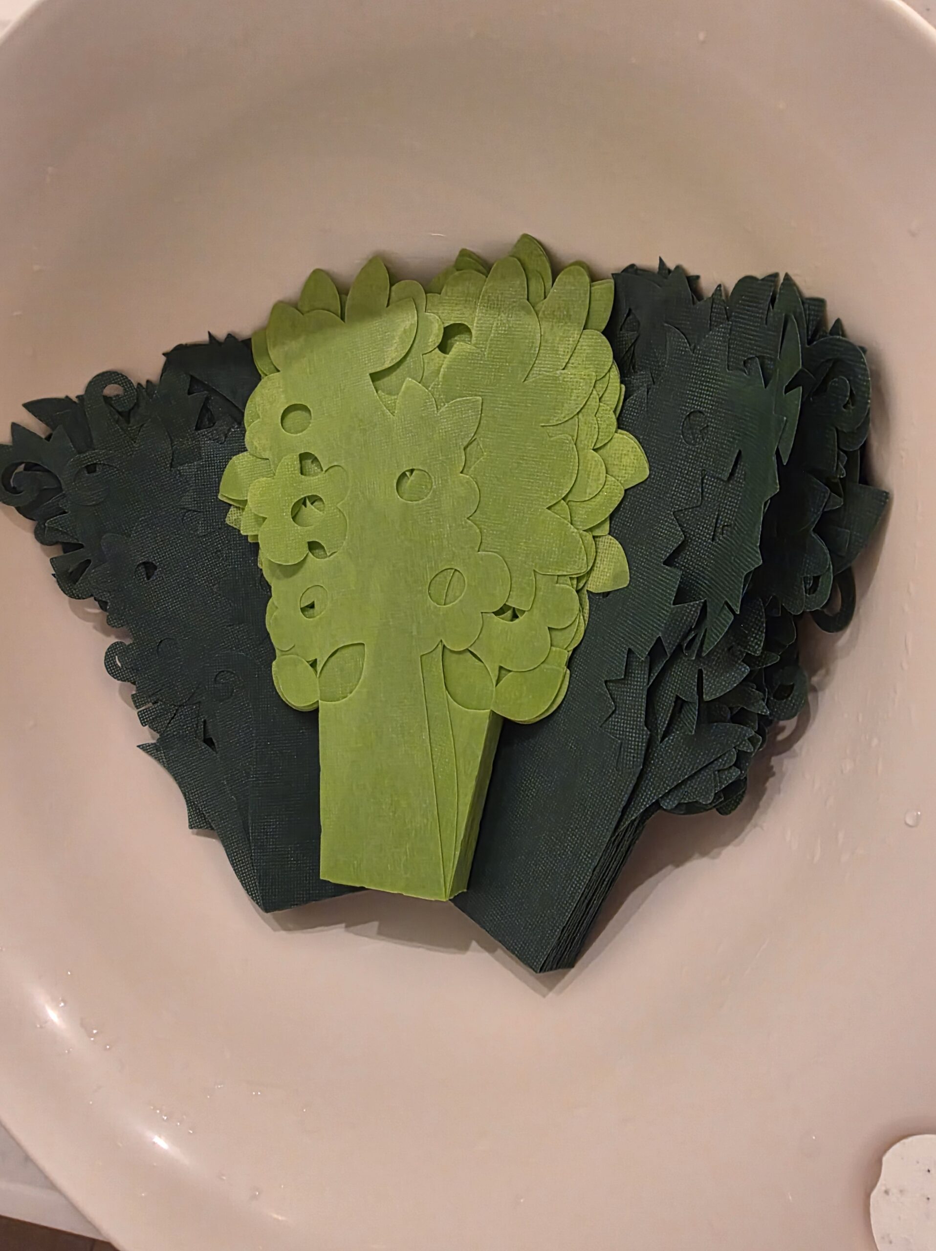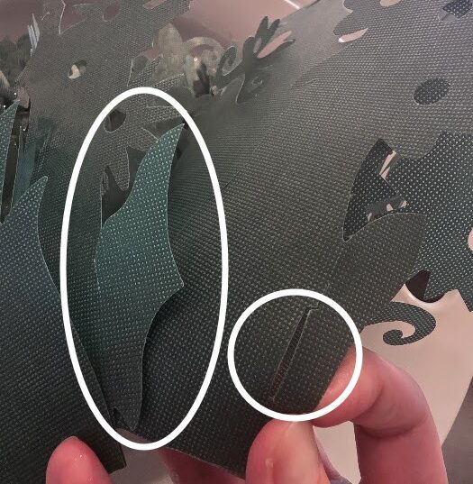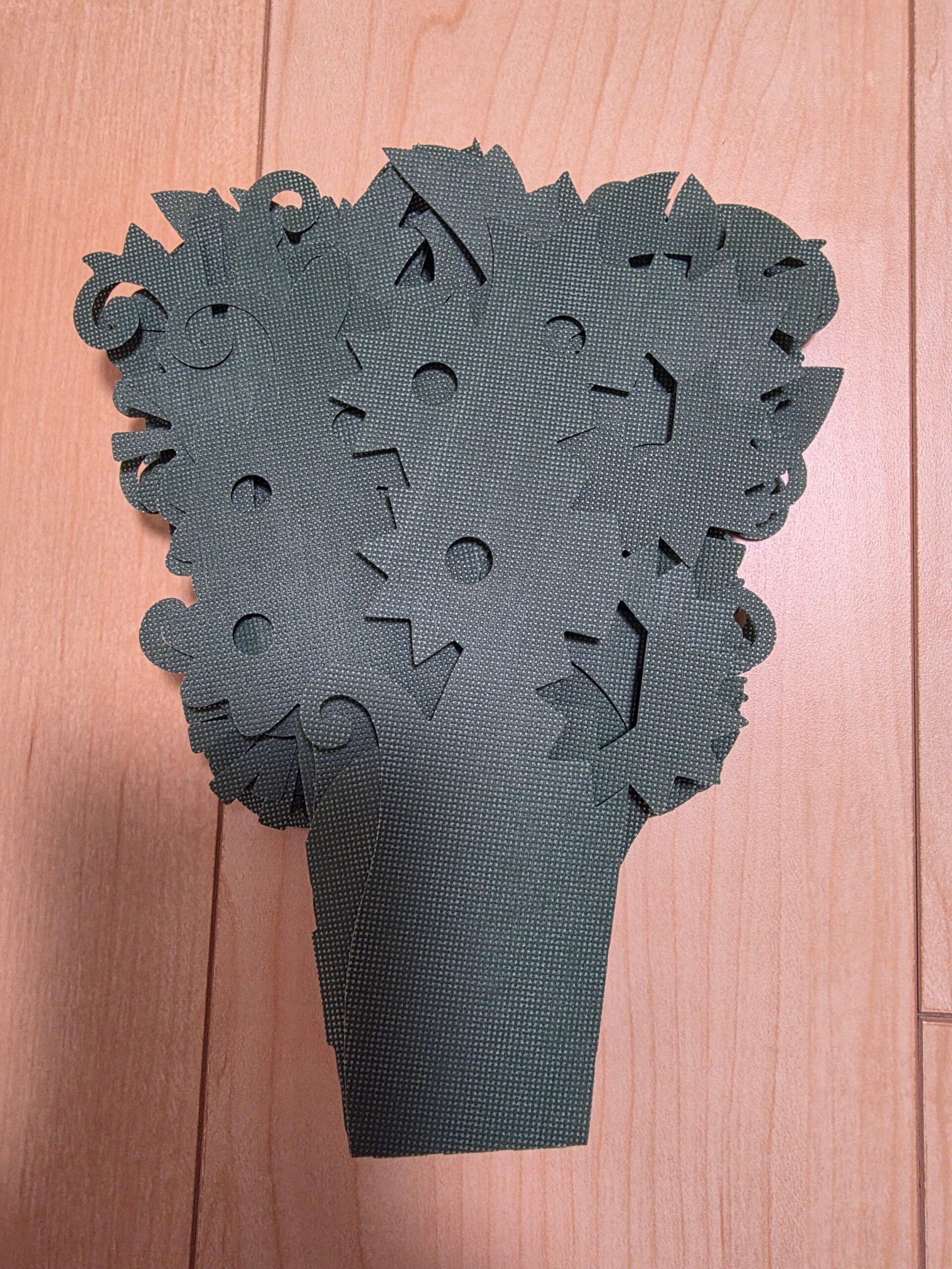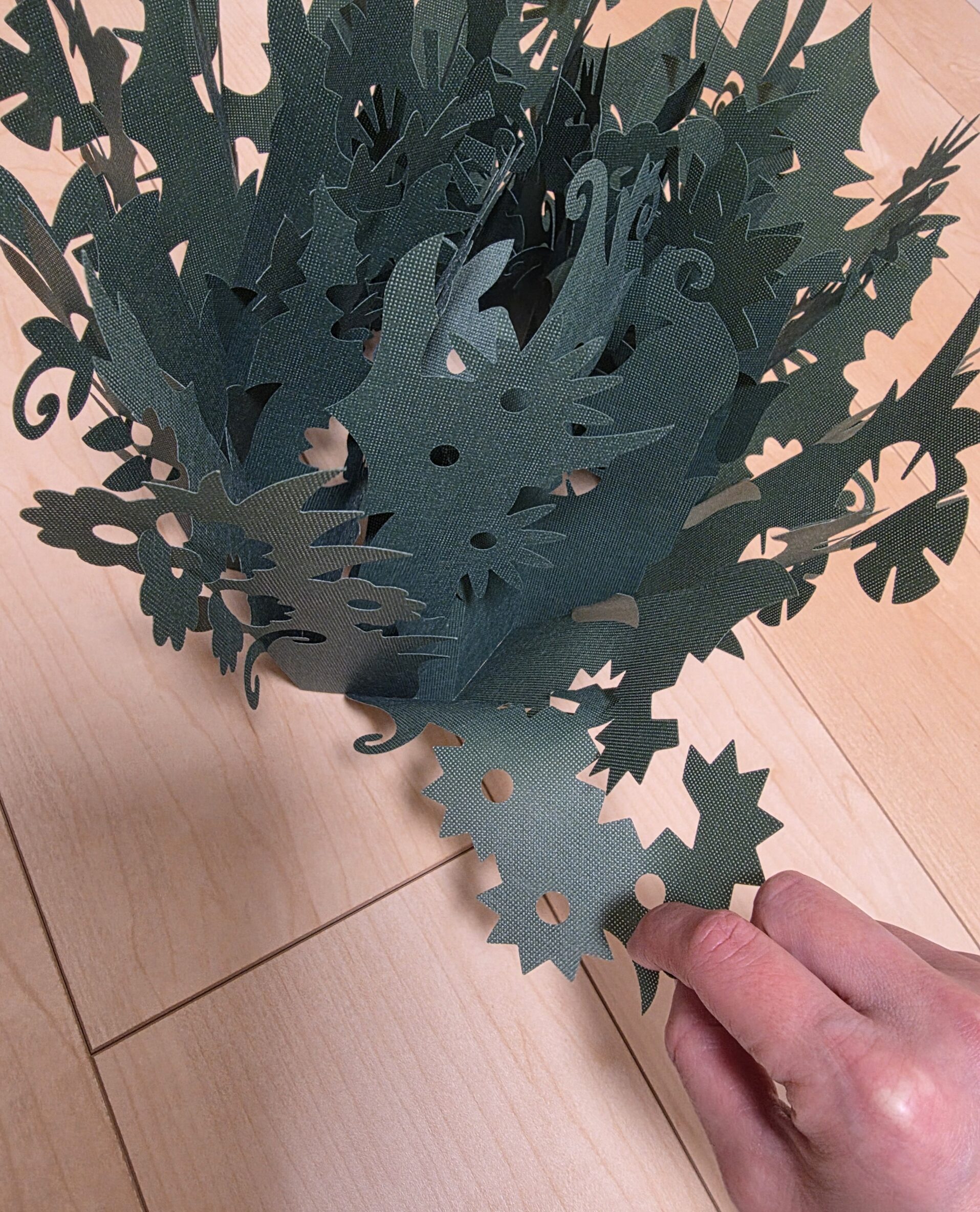 端の切り込みに葉っぱ部分を通して丸くします。